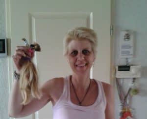 Anita (links) is erg dankbaar voor het prachtige haarwerk dat zij heeft ontvangen van de Haarstichting. “Het haarwerk leek exact op m’n eigen haar”, laat ze weten. Dankzij het Haarstichting-haarwerk voelt ze zich weer echt een vrouw! Als de Haarstichting haar niet aan een mooi haarwerk had geholpen, had zij geen haarwerk kunnen dragen. Ze wilt dan ook alle haardonoren en alle werknemers en vrijwilligers van de Haarstichting die dit mogelijk hebben gemaakt, enorm bedanken.